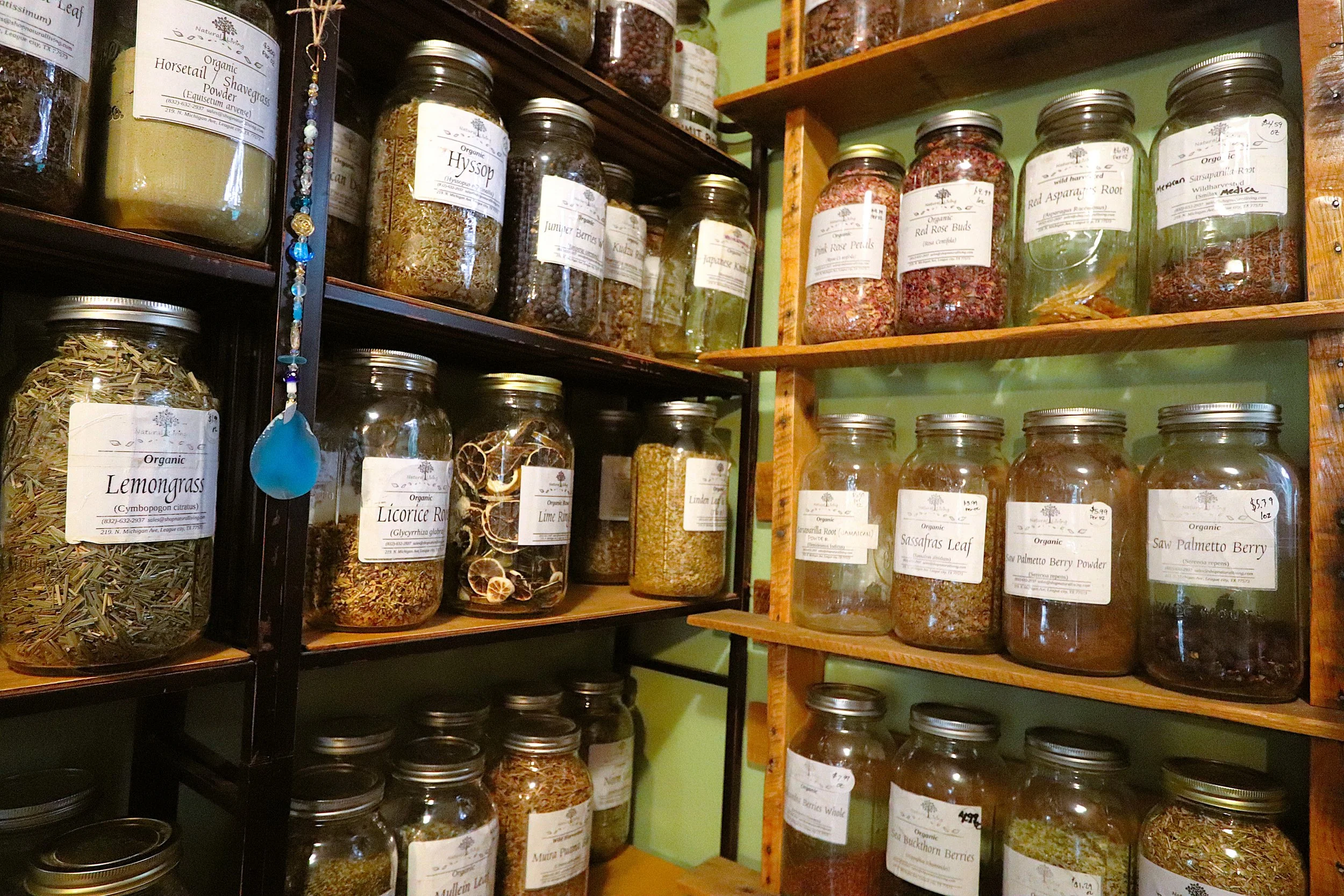 112 organic, medicinal herbs including flowers, leaves, roots, barks, berries, and mushrooms